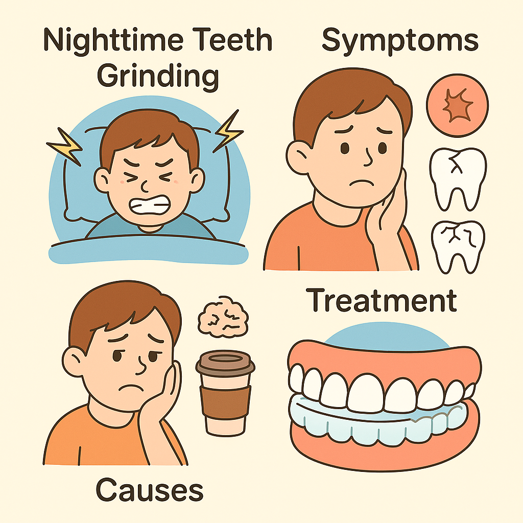 - 대표적 수면장애 중 하나로, 수면 중 무의식적으로 치아를 갈거나 악물어 턱 근육에 과도한 힘이 가해짐